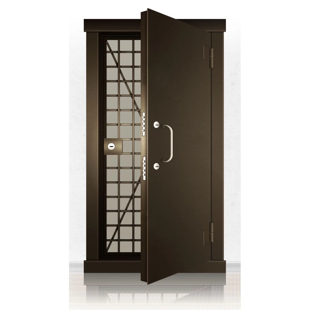 Металлические двери КХО и КХН представляют собой входные блоки, обладающие высоким уровнем взломостойкости и состоят из трех основных элементов: усиленного каркаса, сплошного металлического полотна и решетчатой двери. Дверной блок изготавливается из стального уголка 100*100 мм. Места крепления блока к стене цементируются и закрываются стальными наличниками шириной 40 мм. Крепеж заходит вглубь стены на 80 мм. В конструкции внешней створки монтируются ребра жесткости, для обшивки используется сталь толщиной не менее 3 мм. Внутренняя решетка изготавливается из прутка диаметром 16 мм. Размер ячеек решетки должен составлять не более 15 на 15 см. В точках пересечения прутья надежно приваривают друг к другу. В КХО и КХН необходимо поддерживать определенную температуру и влажность. Для этого внутреннее пространство глухой двери заполняется теплоизоляционным материалом, а по периметру двери приклеивается уплотнитель. Такие двери оборудуются замками с повышенным уровнем взломостойкости. Специализированные двери КХО и КХН в Орле могут быть оснащены сигнализацией, в конструкции могут быть проушины для навесного замка и элементами для опечатывания. Если идет речь о двери в комнату хранения оружия, в створке оборудуется окно для выдачи оружия и спец. средств, которое накрывается стальной дверцей.